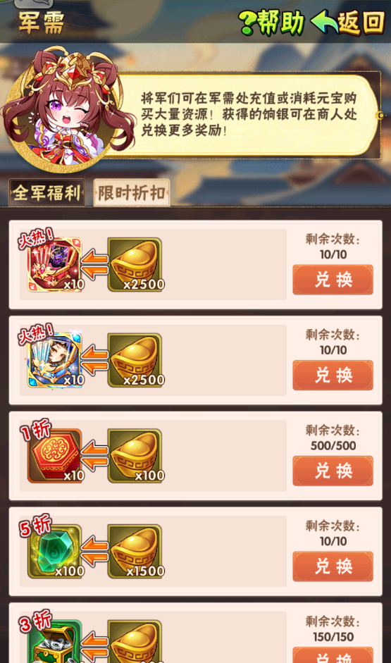 纵横八方折扣商店限时促销,折扣低至2折,用元宝就能购买大量稀缺资源!快来选购吧。