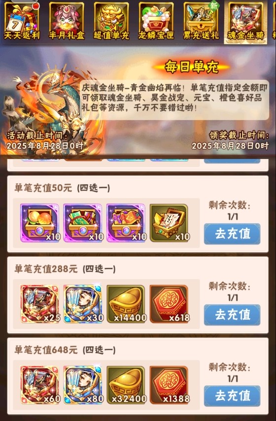 活动一、每日单充 魂金坐骑