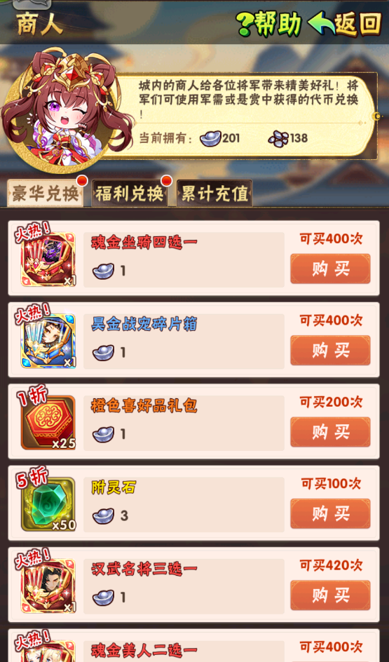 「饷银」可用来兑换魂金坐骑四选一等稀有资源: