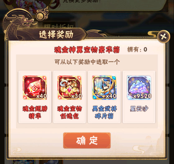 少年们单笔充值指定金额,即可得到魂金宝物任选包!当前档位礼包购买后,方可购买下一档位礼包!优惠多多,不容错过!