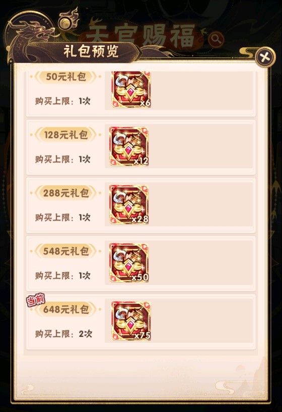 3.天官赐福的充值会正常赠送对应额度的黄金;