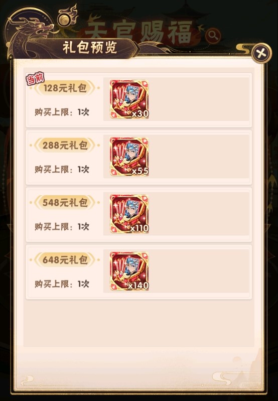 少年们购买礼包后,即可获取节义千古碎片箱!当前档位礼包购买后,方可购买下一档位礼包!优惠多多,不容错过!