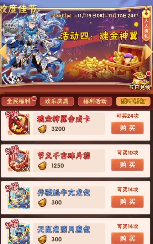 双十一欢庆第四轮:魂金神翼+魂金武将