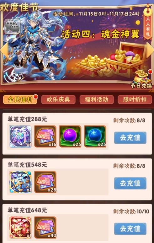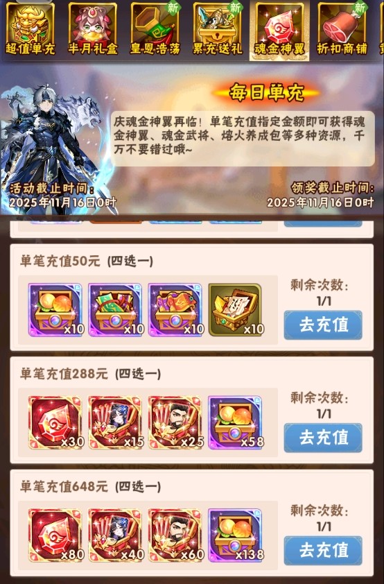 活动一、每日单充 魂金神翼