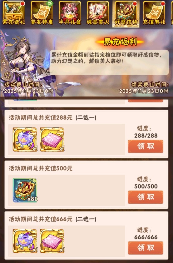 活动四、累充返利 好感信物