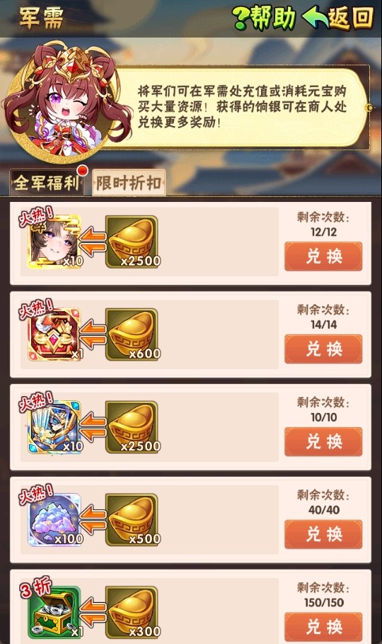 纵横八方折扣商店限时促销,折扣低至2折,用元宝就能购买大量稀缺资源!快来选购吧。