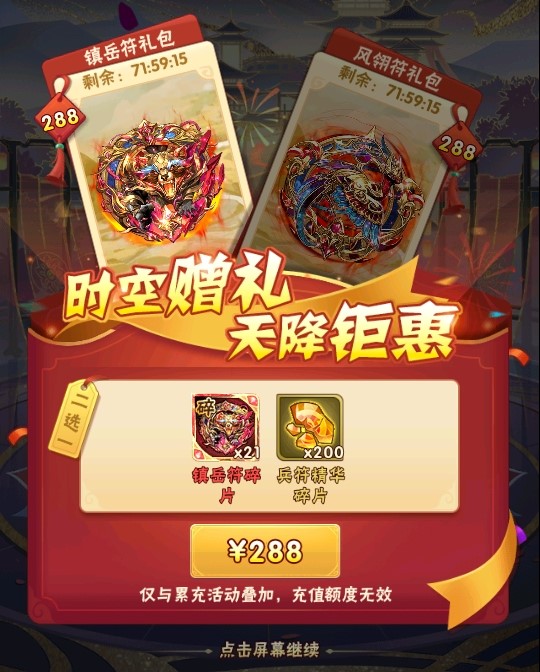 时空礼包上架,镇岳符碎片、风翎符碎片不容错过!