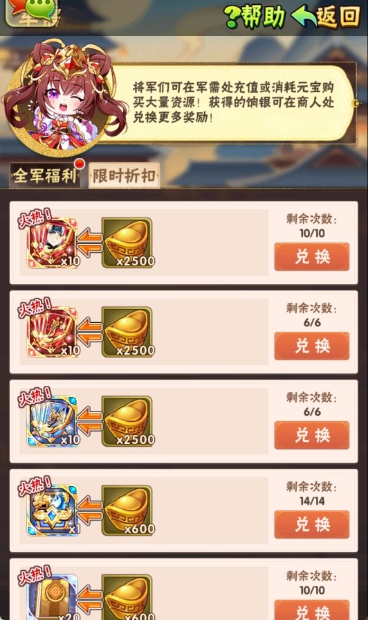 纵横八方折扣商店限时促销,折扣低至2折,用元宝就能购买大量稀缺资源!快来选购吧。