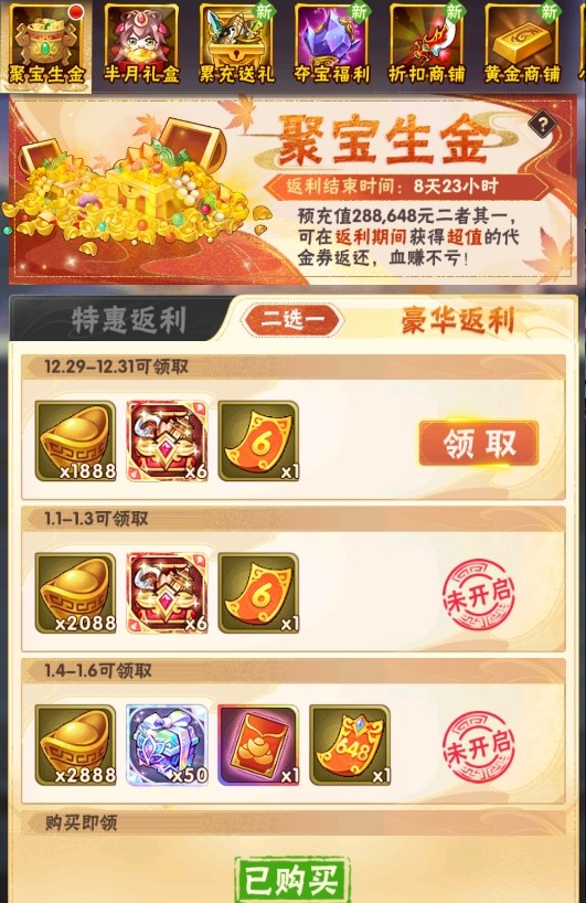 返还时间:12月26日00:00~1月7日00:00