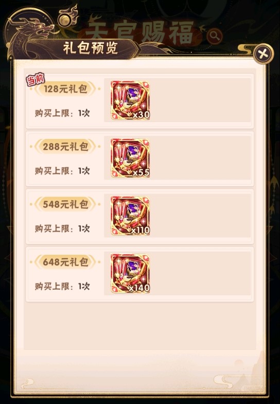 3.天官赐福的充值会正常赠送对应额度的黄金;