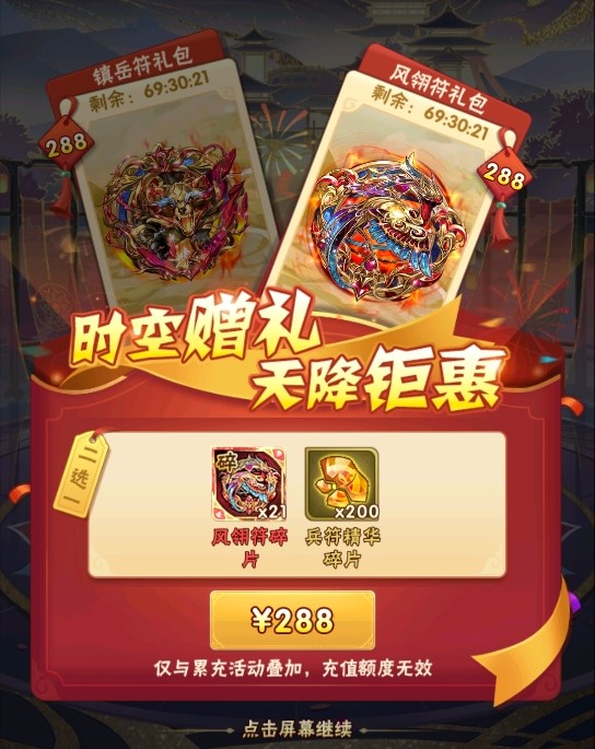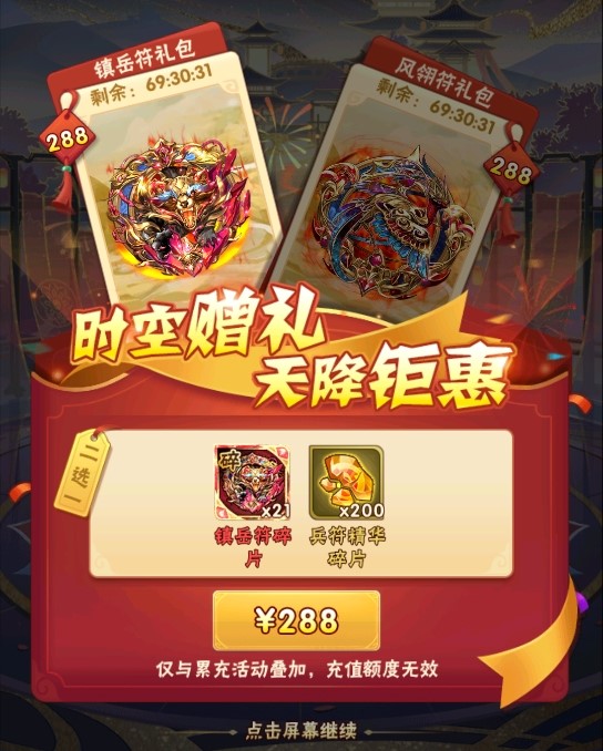 时空礼包上架,镇岳符碎片、风翎符碎片不容错过!