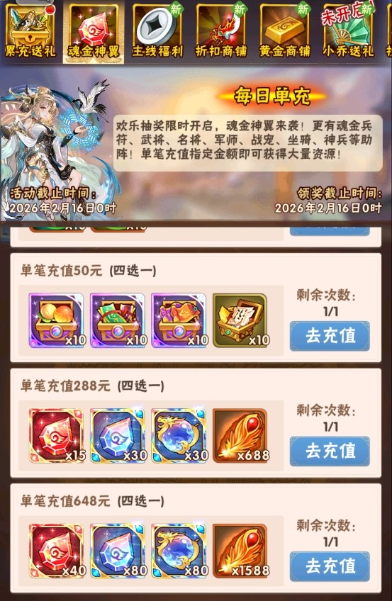 活动一、每日单充 魂金神翼