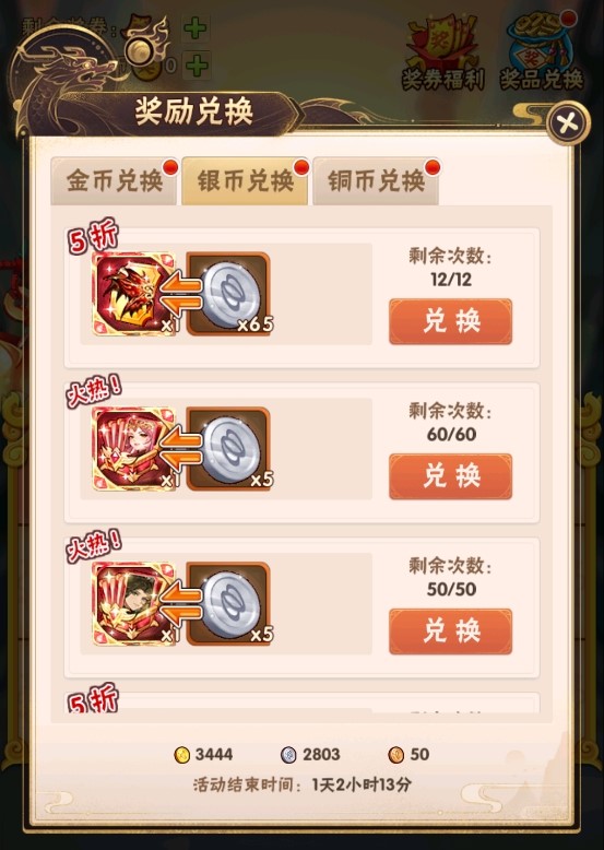 5、请注意奖励兑换结束时间,及时使用欢乐金币、欢乐银币、欢乐铜币兑换奖励道具。