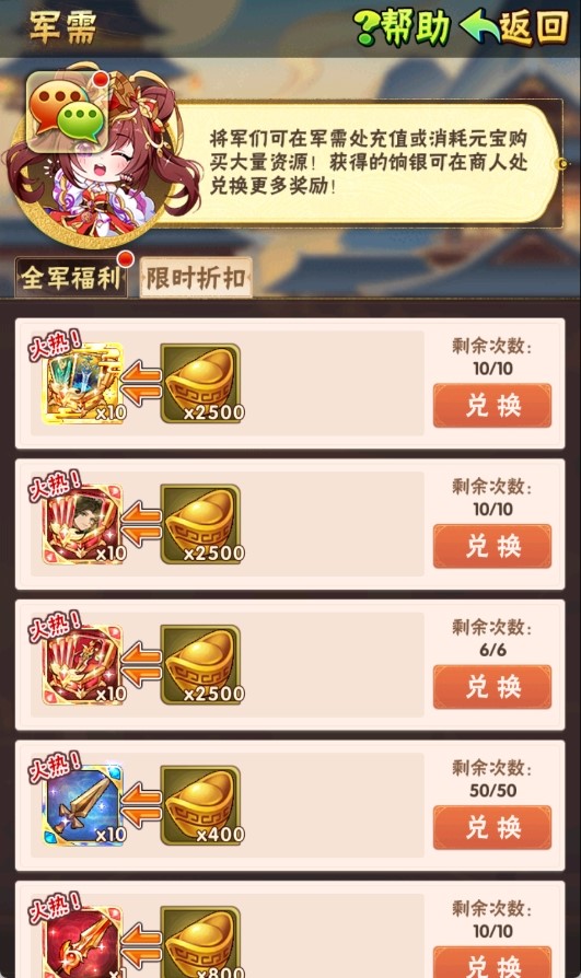 纵横八方折扣商店限时促销,折扣低至2折,用元宝就能购买大量稀缺资源!快来选购吧。