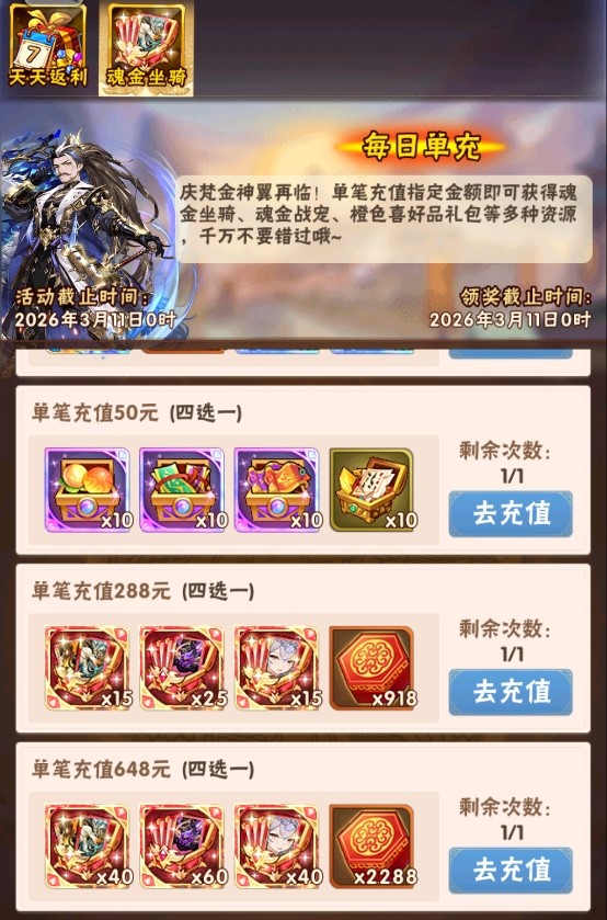 活动一、每日单充 魂金坐骑